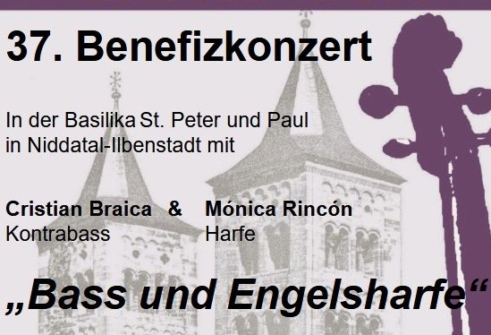 37. Benefizkonzert in der Basilika St. Peter und Paul in Niddatal-Ilbenstadt mit Cristian Braica (Kontrabass) und Mónica Rincón (Harfe).
